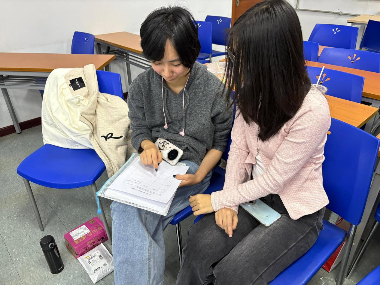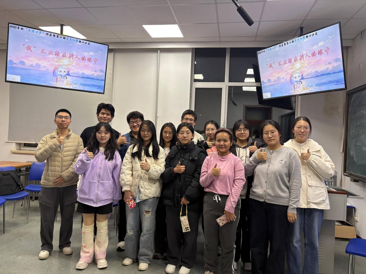 随后进入“别人眼中的我”分享环节。赵婧婧老师首先分享了自身经历,谈及如何将“向内指责”的惯性,转化为温暖而向上的成长力量。在她的鼓励下,同学们也纷纷敞开心扉,讲述自己在社会比较中的困惑、在他人评价中的摇摆。大家认识到,外界的评价虽能提供镜鉴,却也容易成为心灵的枷锁;真正的自我价值感,源于内在的建构与确认,而非完全依赖外界的回响。现场氛围真诚而包容,每一次分享都伴随着理解的掌声,每一次倾听都传递着无声的共情。