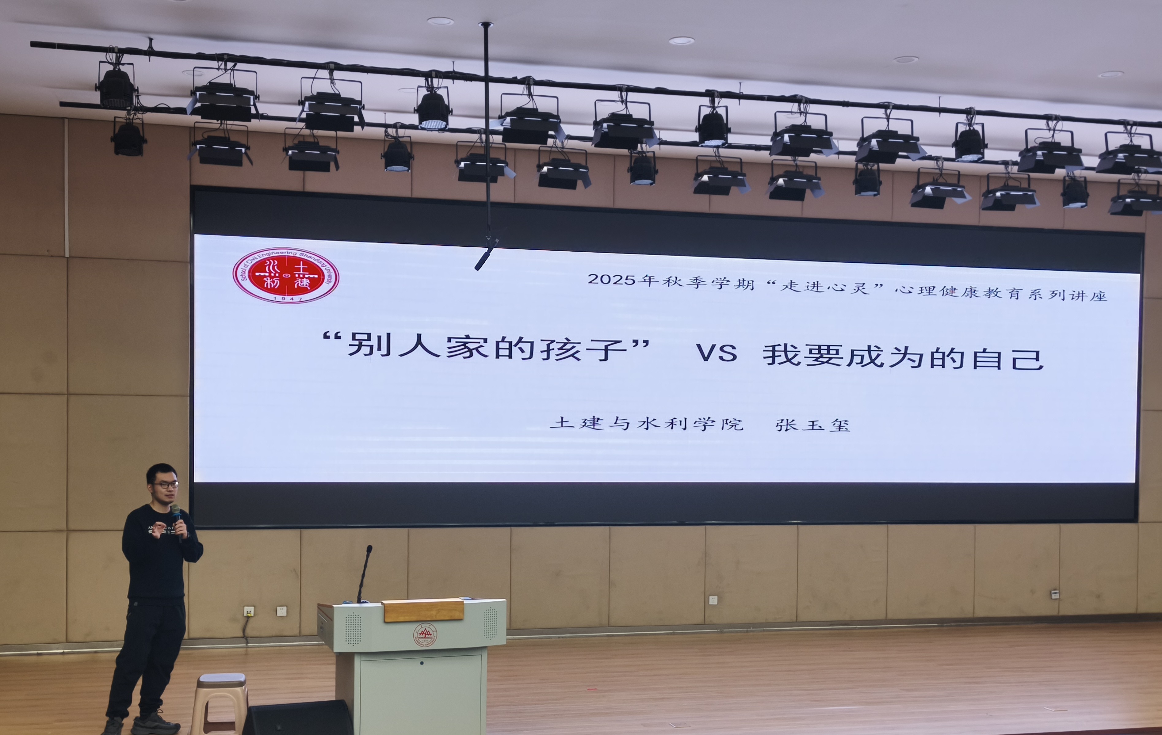 为引导学生形成积极的自我认知、有效缓解心理压力,11月26日,土建与水利学院在兴隆山校区讲学堂101举办2025年秋季学期“走进心灵”心理健康教育讲座。本次讲座由本科生辅导员张玉玺主讲,以“别人家的孩子VS我要成为的自己”为主题。2025级全体同学及部分高年级同学参加活动。
