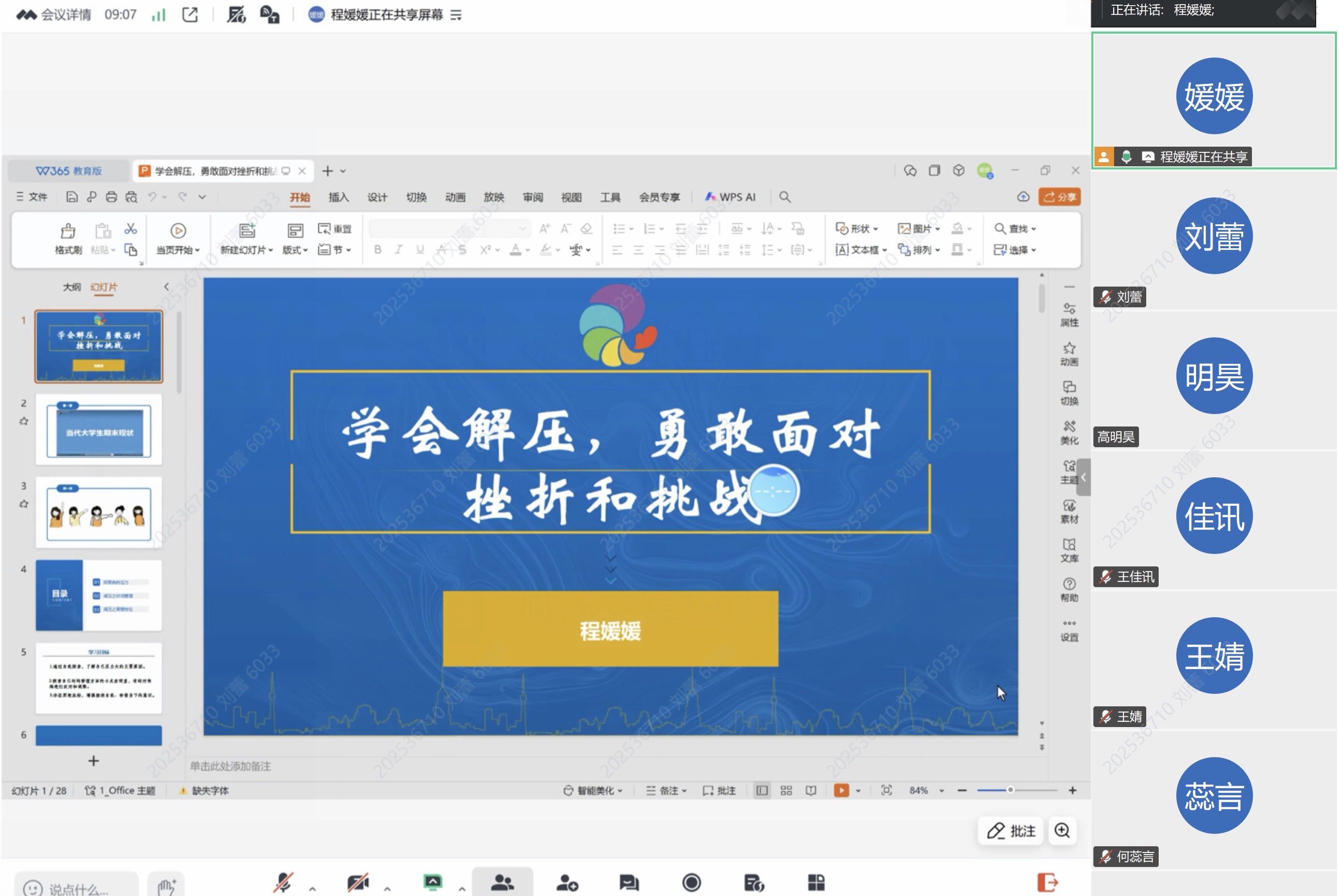 同时,程老师科普了多种易操作的放松方法:包括4-3-6呼吸法、4-7-8呼吸法在内的专业呼吸技巧,平躺状态下循序渐进的腹式呼吸法,从脚趾到全身逐步推进的渐进式肌肉放松法,以及能快速缓解焦虑情绪的蝴蝶拍技巧,每一种方法均讲解详尽,便于同学们即时练习掌握。