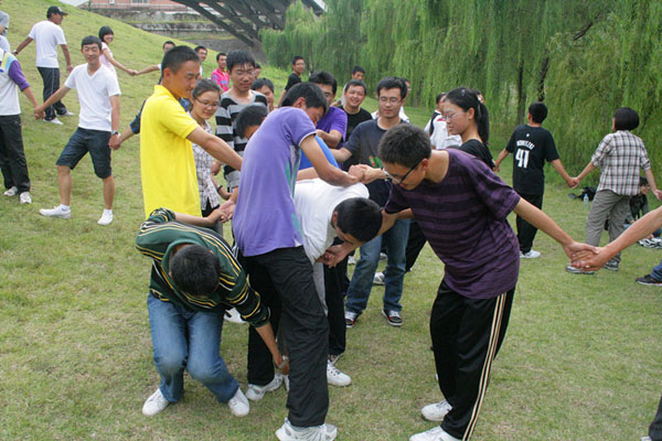 下午2时许,11级新生先后来到天工湖畔,在集合完毕后,邱老师做了简短的讲话,鼓励大家在接下来的活动中踊跃参与,做到开心,开怀,认识新朋友,融入大家庭。新生们满怀热情,跃跃欲试。活动分为“微笑相识”、“班级游戏”、“组歌大比武”、“进化论”四个环节。活动规则简单,集体性强,收到良好效果。“微笑相识”要求每位同学向他人伸出友谊之手,自我介绍,相互交流,旨在培养大家的人际交往能力和做事的主动性。“班级游戏”和“组歌大比武”中同学们分组活动,既有合作又有竞争,在欢声笑语中彼此相识,又懂得了团体合作的重要性。“进化论”中同学们分组比赛,优胜者一步一步进化成长,暂时落后者也有机会反败为胜,活动紧张有序地进行,很快决出胜负。最后,邱老师强调,大学生活就和“进化论”一样,主动出击,以最快速度进步的人,就能最先赢得胜利,希望大家尽快适应新环境,学会学习,学会思考,收获自己美好的大学生活。活动在同学们热烈的掌声中圆满结束。