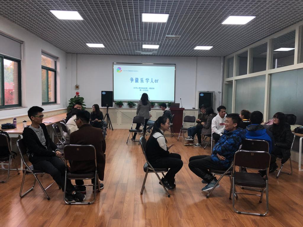 乐学实验室成员招募信息发布之后,便引发了各学院、各年级学生的强烈反响,两天内自主报名学生近200人。为保证活动效果,经深入访谈及沟通交流后选择具有强烈意愿及切实需要的30名学生成为第一期团体成员。根据参与学生的实际需要设计了有针对性的团体辅导活动。本学期五次活动分别以学习动力探索、学涯规划、学习循环及行动力、时间管理、学习情绪调节为主题,是一个循序渐进地激发学生学习兴趣、培养其自主学习能力的系统过程。通过团体小游戏、心理分析、头脑风暴、行动训练等形式,帮助学生积极参与、互帮互助、集思广益、解决在校学习中遇到的困难。