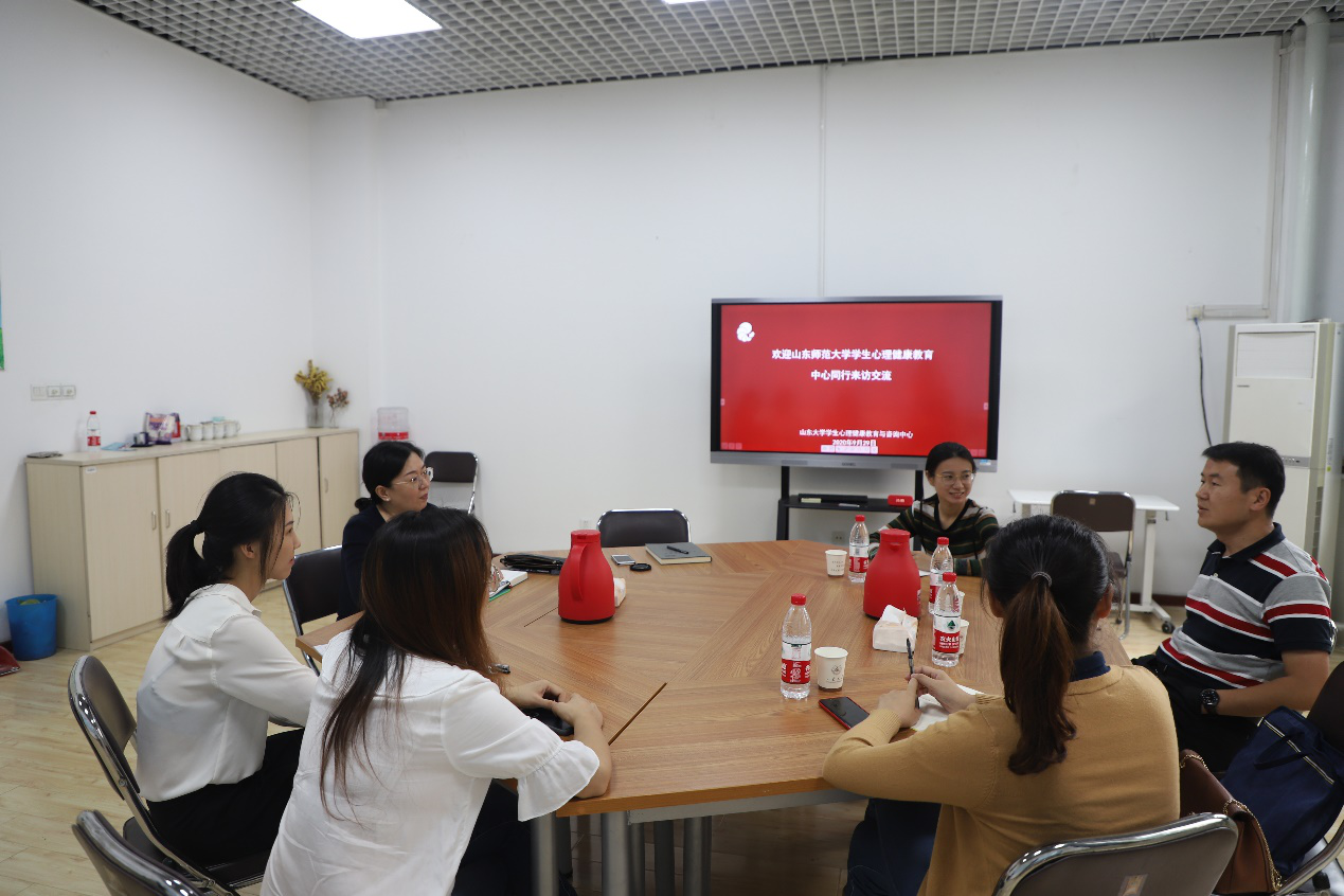 9月29日,山东师范大学学生工作部副部长王超一行三人到山东大学学生心理健康教育与咨询中心参观交流,心理中心主任傅艺娜及中心专职教师代表与来访团进行交流座谈。