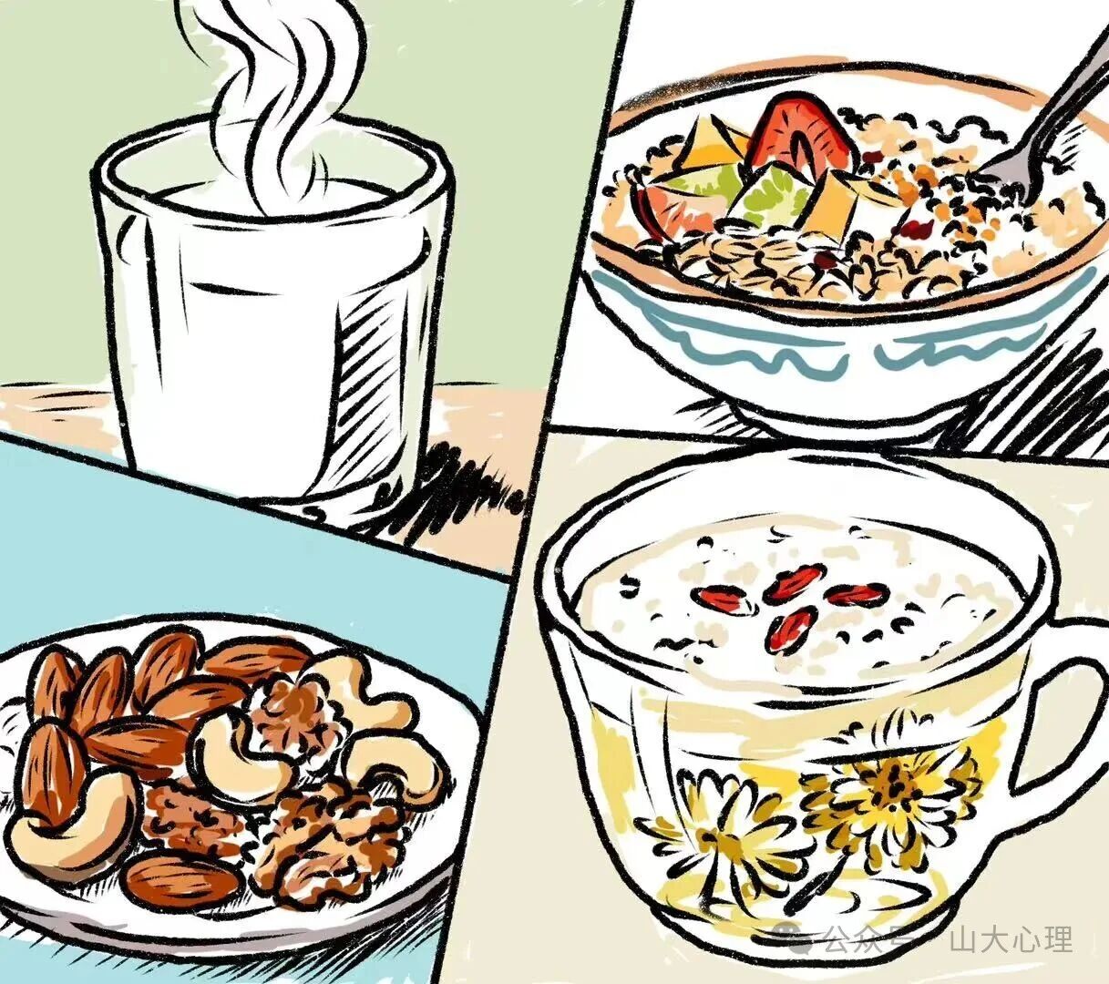 第二,调整睡眠和饮食。保持规律的作息,尤其是充足的睡眠,对于稳定生物钟和内分泌具有很大的意义,这样有利于平衡激素的分泌,控制激素分泌不平衡导致的抑郁情绪的增加。饮食上则要多吃一些富含维生素B、维生素D、镁、锌等营养素的食物,如全谷物、坚果、鱼类、牛奶等,这些营养素可以帮助合成和分泌血清素。要注意早餐的必要性,并尽可能食用牛奶、鸡蛋、水果来增加蛋白质与钙质的摄入量,以增强耐力与意志力。另外注重养心和养肝,玫瑰花或菊花茶、莲子茶能帮助清肝解郁;莲藕、莲子、小麦、甘草、红枣、龙眼等食物有助于养心安神;核桃、鱼类等含有较多磷质,也能帮助人们对抗抑郁情绪。