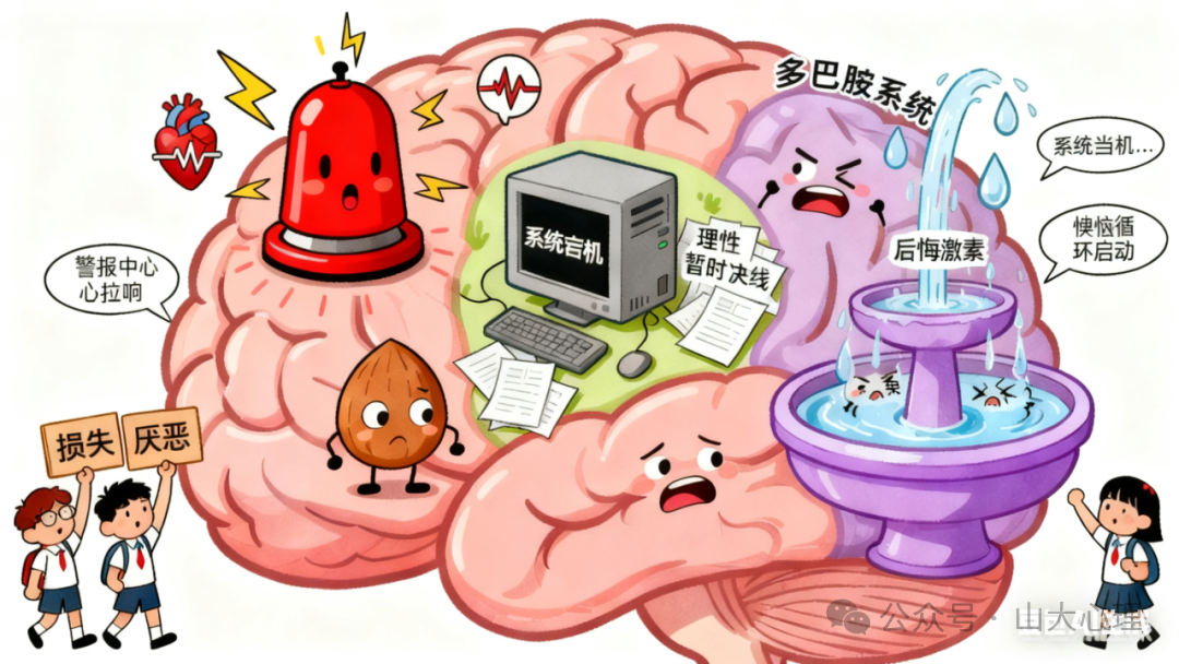 当损失厌恶被触发时,你的大脑会经历一场“生化风暴”: