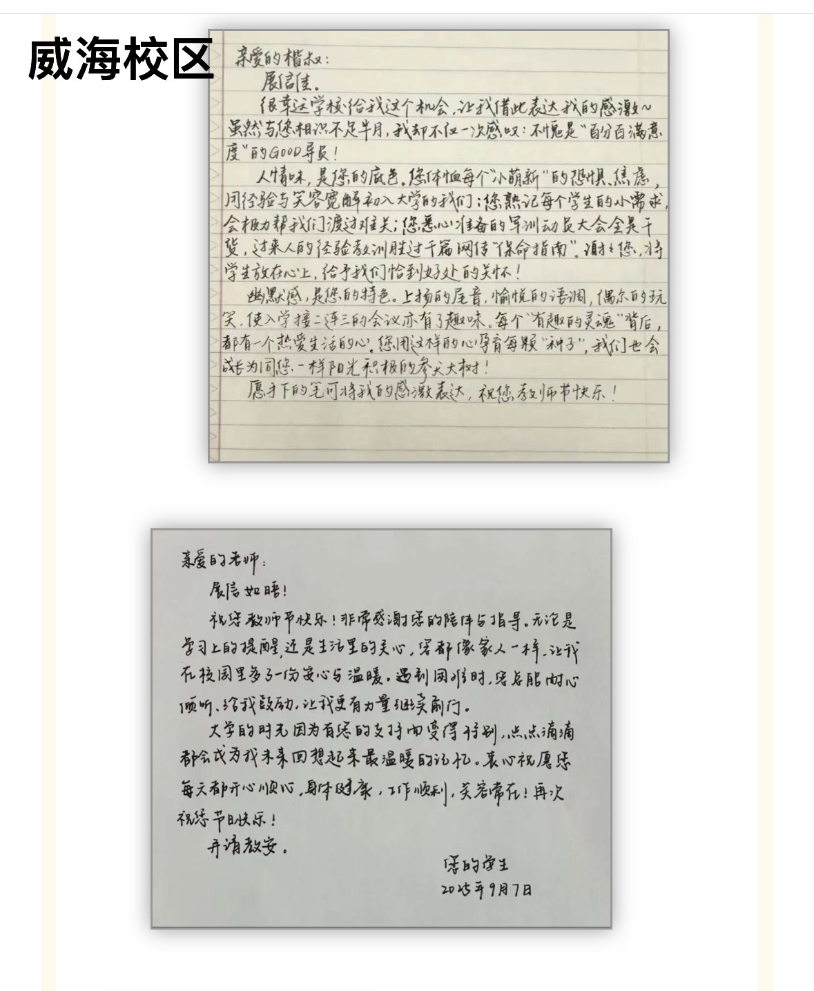 在第41个教师节的温馨氛围里,由山东大学党委教师工作部、学生心理健康教育与咨询中心指导,学生心理协会策划组织的“老师!您有一封‘心’来信”活动,于9月7日至10日在一校三地温情启幕。活动以感恩为笔、以心意为墨,山大学子通过线上、线下多种形式向师长们倾诉心声,传递祝福明信片两千余张,为节日增添别样温暖。