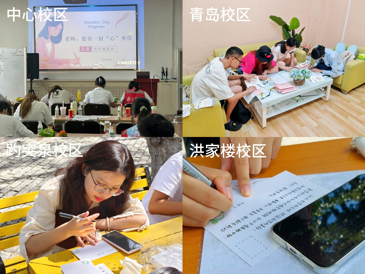 活动创新性地通过“线上征集+线下互动”双途径传递祝福。线下,一校三地八个校区的祝福书写点成了校园里最动人的风景线,同学们或驻足沉思,或提笔疾书,将平日里藏在心底的感激,化作朴实又真挚的话语,落于明信片之上。线上,扫码留言的页面同样热闹,那些曾在对话框里删改多次的真心话、犹豫许久未说出口的感谢,都化作文字,跨越屏幕传递温情。