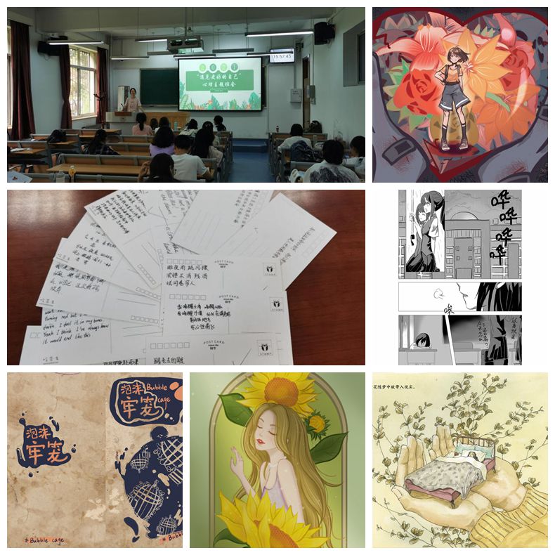 学习知识的最终目的是应用知识,只有将所学的心理学知识应用到自己的生活中,才能真正激发学生的内在动力。为检验学生对于心理知识的应用情况,举办心理情景剧大赛、朋辈辅导技能大赛、心理健康征文比赛、心理健康主题绘画设计大赛、心理主题班会等多项主题活动,通过情景剧表演、竞赛问答、文章撰写、绘画表达等方式,考验学生对于知识的理解、掌握和应用情况。情景剧大赛重在用表演的形式重现大学生生活场景,展现朋辈心理工作实效;朋辈辅导技能大赛考验学生灵活运用所学知识的能力,在机敏的反应中重新温习所学、展示所用;心理健康征文比赛则为擅长写作的同学提供平台,在一字一句的真挚表达中展现对生活的热爱和生命的热情;心理健康主题绘画设计大赛注重内涵表达,展现学生对于自身心理健康的理解和认识;心理主题班会则充分体现了同学们的创造力和热情,用学生自己乐于接受的方式渗透心理学原理,提高生活幸福感。