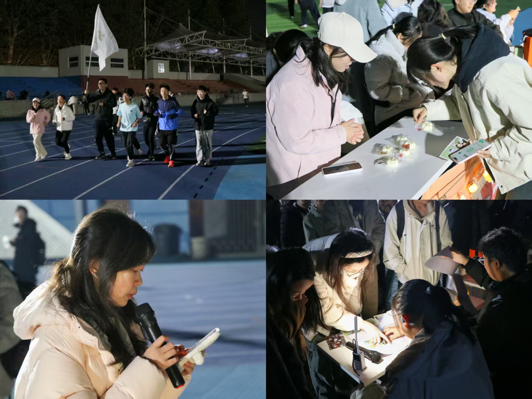 活动分为音乐跑、音乐分享与心理知识问答三个环节。在音乐跑环节中,同学们在学生马拉松爱好者协会成员的带领下,围绕操场奔跑,感受呼吸与步伐的节奏,释放压力、放松身心;音乐分享环节气氛热烈,同学们踊跃登台演唱,用歌声表达情感、展现自我;心理知识问答围绕情绪管理与自我关怀展开,参与者在轻松互动中提升了心理健康意识。活动开始仅半小时,礼品即告发罄,但参与者的热情不减,现场氛围持续高涨。
