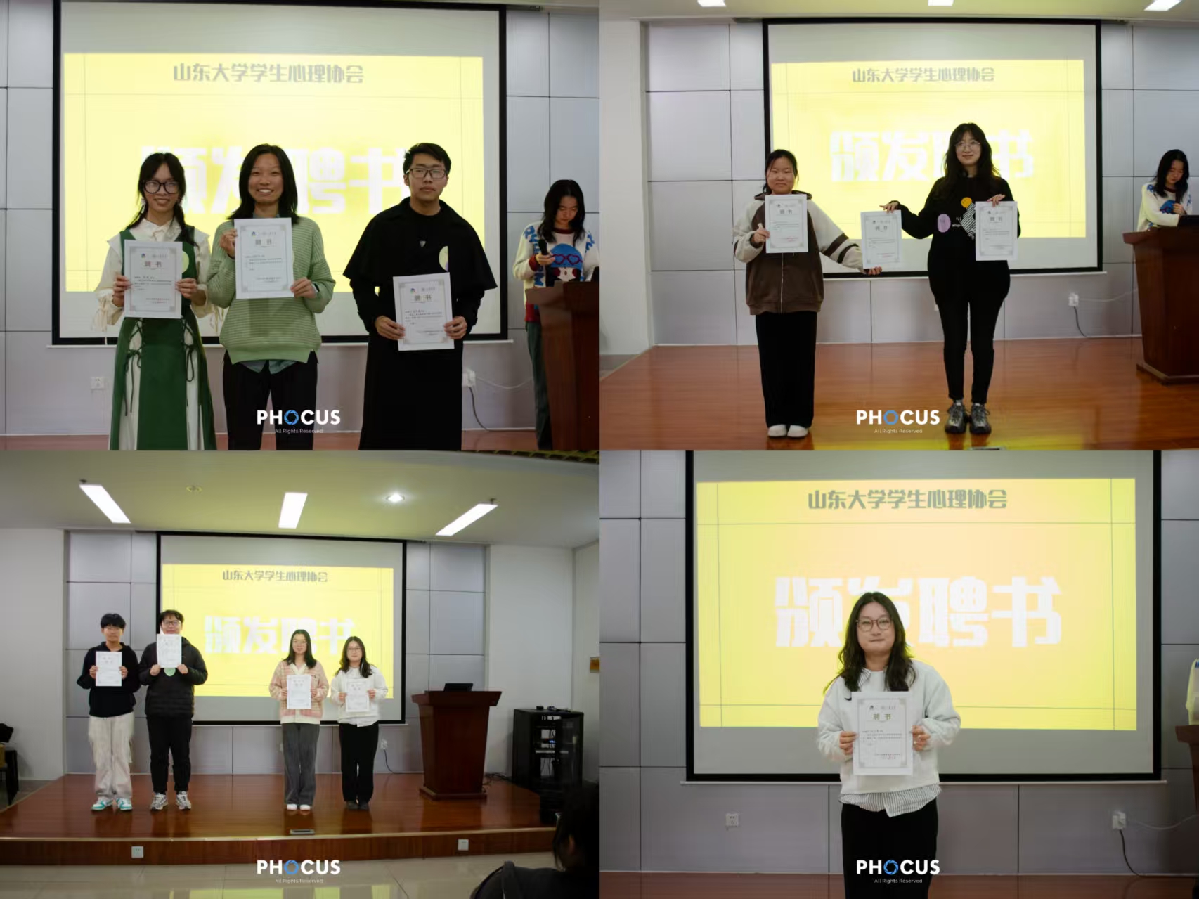关怀支持部前部长马博、学术部前部长周凡依次分享了在心协的成长经历与感悟。指导老师李晓含亲临现场寄语,赵子仪老师也通过视频送来鼓励,勉励新骨干勇担使命,传递温暖。发言环节结束后,社长王一然为本届负责人团队颁发聘书,各部门、校区负责人在全体骨干的见证下,正式接过责任与期待。
