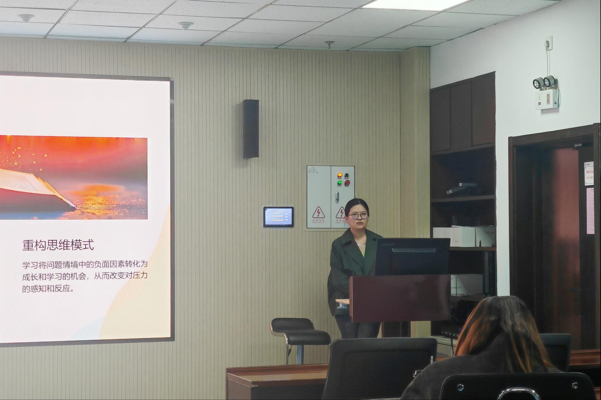 在压力来源分析环节,王馥佳老师总结了同学们面临的主要压力:学业竞争、综测评价、未来就业规划、人际关系维护等。同时详细阐述了长期压力对身体健康的潜在影响,如睡眠质量下降、免疫力降低、情绪波动等,以及在行为表现上可能出现的拖延逃避、注意力不集中、社交退缩等问题,让同学们清晰认识到科学管理压力的重要性。