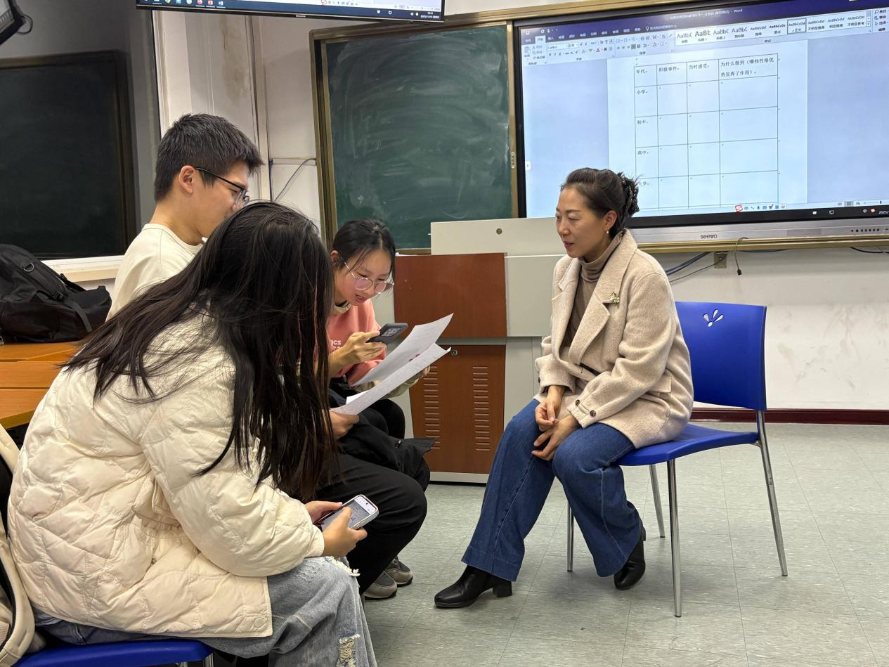 在活动的开始,赵老师以亲切的自我介绍破冰,迅速拉近了与同学们的距离。她分享了自己的人生历程中,关于“被看见”与“被定义”的体悟,引导大家思考:我们是否常常活在他人的眼光与期待中,而忽略了内心真实的声音?她温暖而坚定的声音,像一束光,照进了许多同学隐秘而共通的内心世界。
