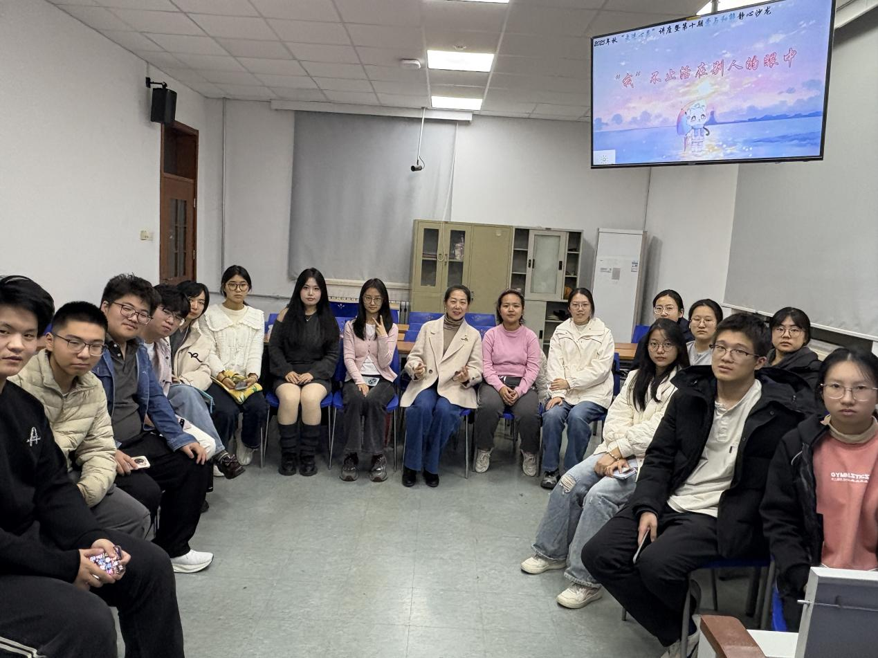2025年11月16日晚,外国语学院组织开展“走进心灵”讲座暨“爱与和解”静心沙龙,本次沙龙的主题为“我不止活在别人的眼中”,由学院心理辅导员赵婧婧主讲,通过沉浸式互动与面对面对话,引导同学们开启一段认识自我、悦纳自我、超越自我的心灵旅程。来自学院不同年级的近30名同学参加活动。