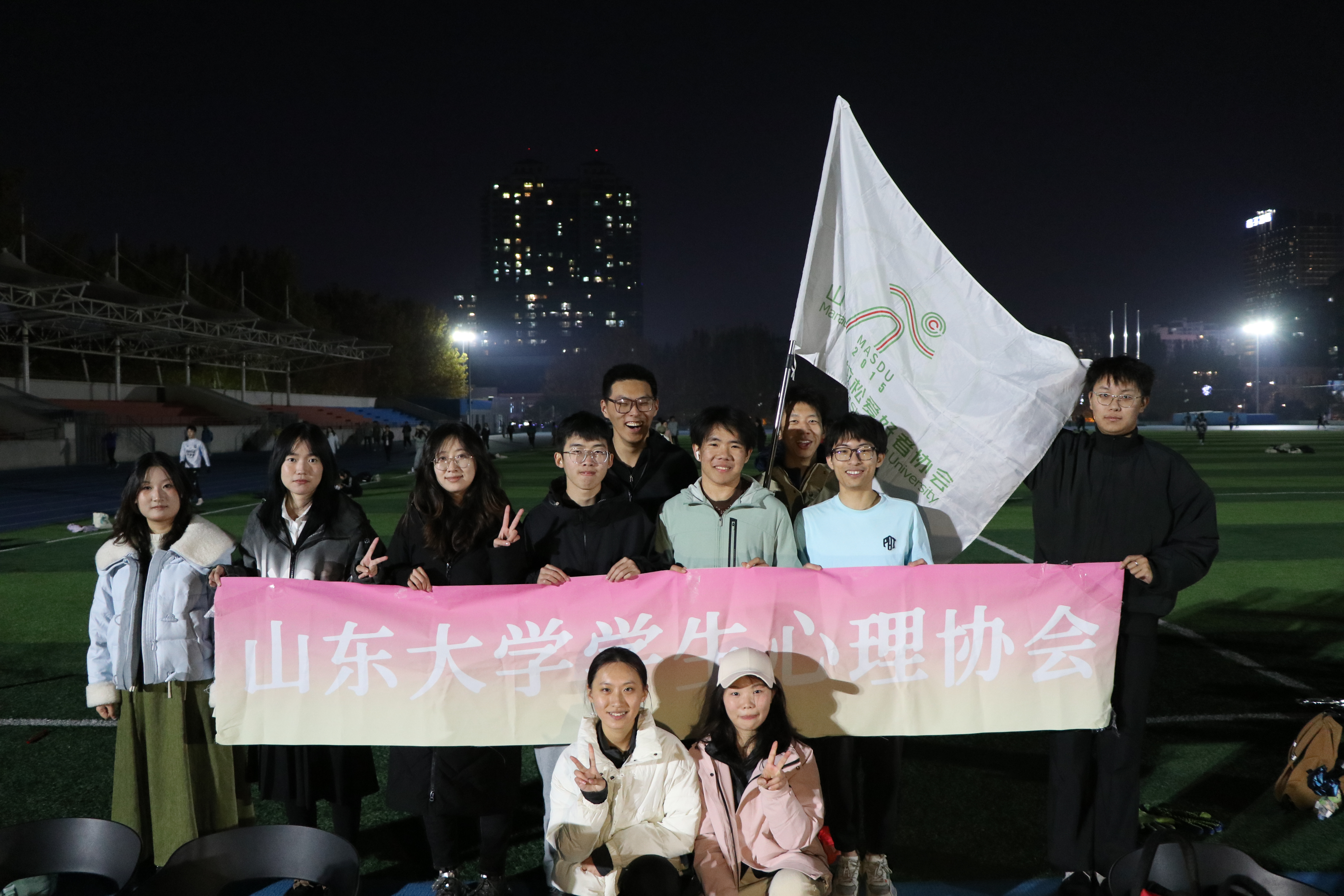 2025年11月21日晚,学生心理协会与学生马拉松爱好者协会在中心校区风雨操场联合举办“音悦心声音乐跑”活动。作为“先行者”心理健康校园行(山东大学站)暨山大健心房第三期活动的重要组成部分,本次活动将运动、音乐与心理关怀相结合,为初冬校园增添温暖与活力。