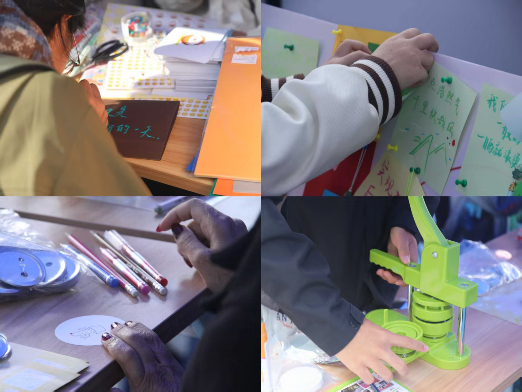 学生心理协会策划了“心有千千结-联结,从此刻开始”主题活动,精心设计“初结·注册冒险名牌”“心结·撰写心灵祈愿”“缘结·咔哒,契约已成!”三个互动体验环节,邀请同学展开心结,与学生心理协会共创联结。活动现场,心协展台人头攒动、气氛活跃,精美的展台布置、有趣的体验活动、可爱的卡通玩偶、热情的心协成员吸引同学们驻足参与。“初结”环节将自我介绍与手工制作相结合,快速化解了初次见面的陌生感;“心结”环节将中国结的传统文化韵味与朋辈心理关怀融为一体,用承载着真挚情感的话语联结彼此心灵;“缘结”环节以其互动性与趣味性备受青睐,为同学们留下了参与活动的实物记忆,让积极心理的种子悄然生长。